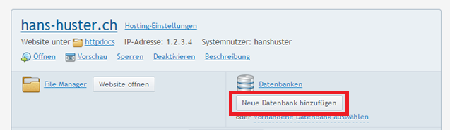 2. Klicken Sie oben auf die Registerkarte Websites & Domains und wählen Sie die Option Neue Datenbank hinzufügen aus:
