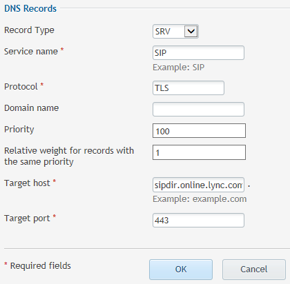 • Priority = Priorität von diesem Eintrag (bei Office365 meistens 100) (falls mehrere identische Dienste angeboten werden, hat die niedrigste Priorität Vorrang)
