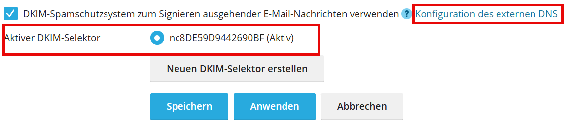 Das Signieren durch DKIM wird für jede Domain einzeln aktiviert.