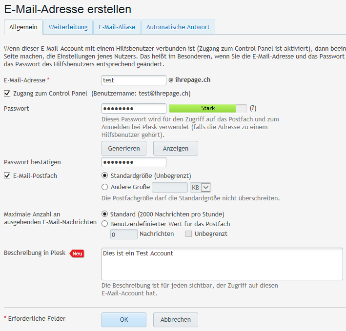 Sie möchten einen neuen E-Mail Account eröffnen einen bestehenden weiterleiten oder neue Alias Mail Namen erfassen, dann gehen sie wie folgt vor.
