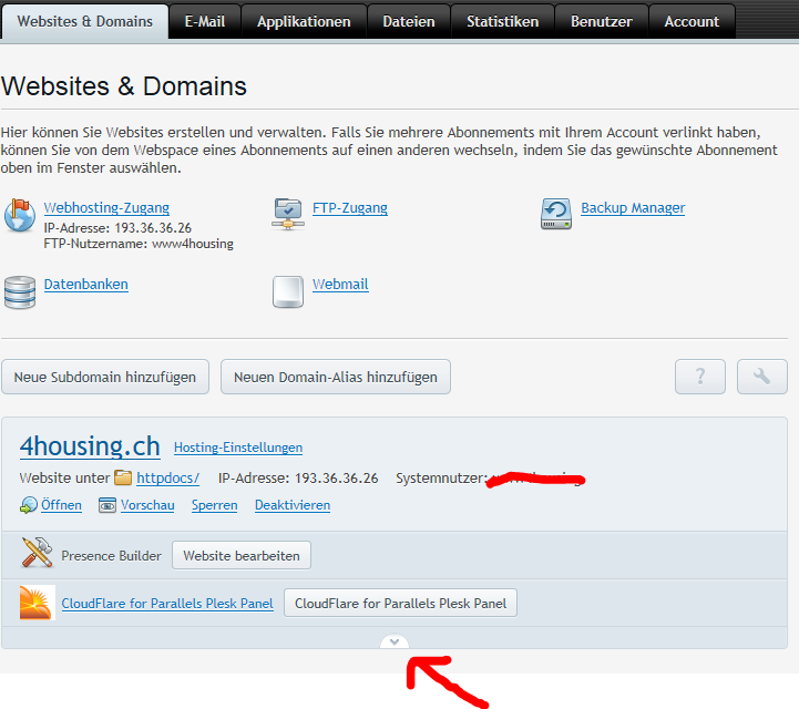 1. Melden sie sich am Hosting Control Panel https://servername.simplehosting.ch:8443 an ( Servername finden sie im Account Mail ) oder via https://www.ihrepage.ch:8443