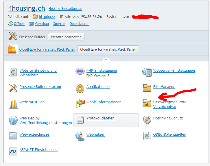 3. Klicken Sie auf das Symbol "Passwortgeschützte Verzeichnisse