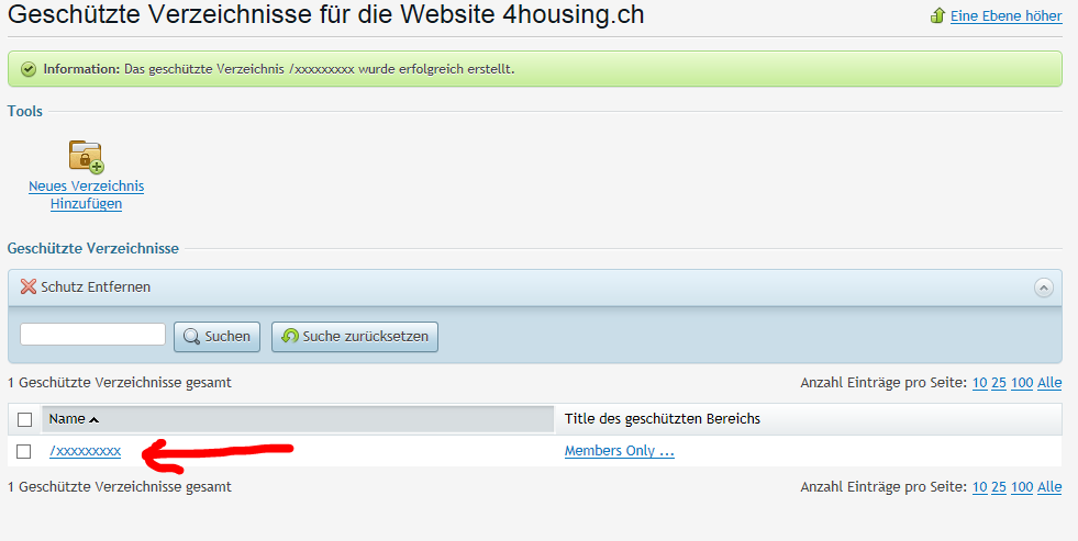6. Danach ist das Passwortgeschützte Verzeichnis erstellt uns sie müssen nun noch die gewünschten Benutzer dazu einrichten welche darauf Zugriff haben sollen.